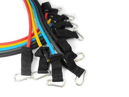 - São ideais para programas de exercícios em casa e podem ser facilmente incorporadas em um formato de treinamento em circuito ajudando a condição do sistema cardiovascular, bem como fortalecer os grupos musculares específicos. O Kit de Elásticos de Resistência é tão compacto, leve e fácil de transportar, usado em qualquer lugar, basta acoplá-lo à uma porta, escapula, grade, etc.